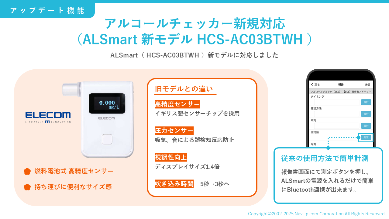 アルコールチェッカー新規対応(ALSmart 新モデル HCS-AC03BTWH )