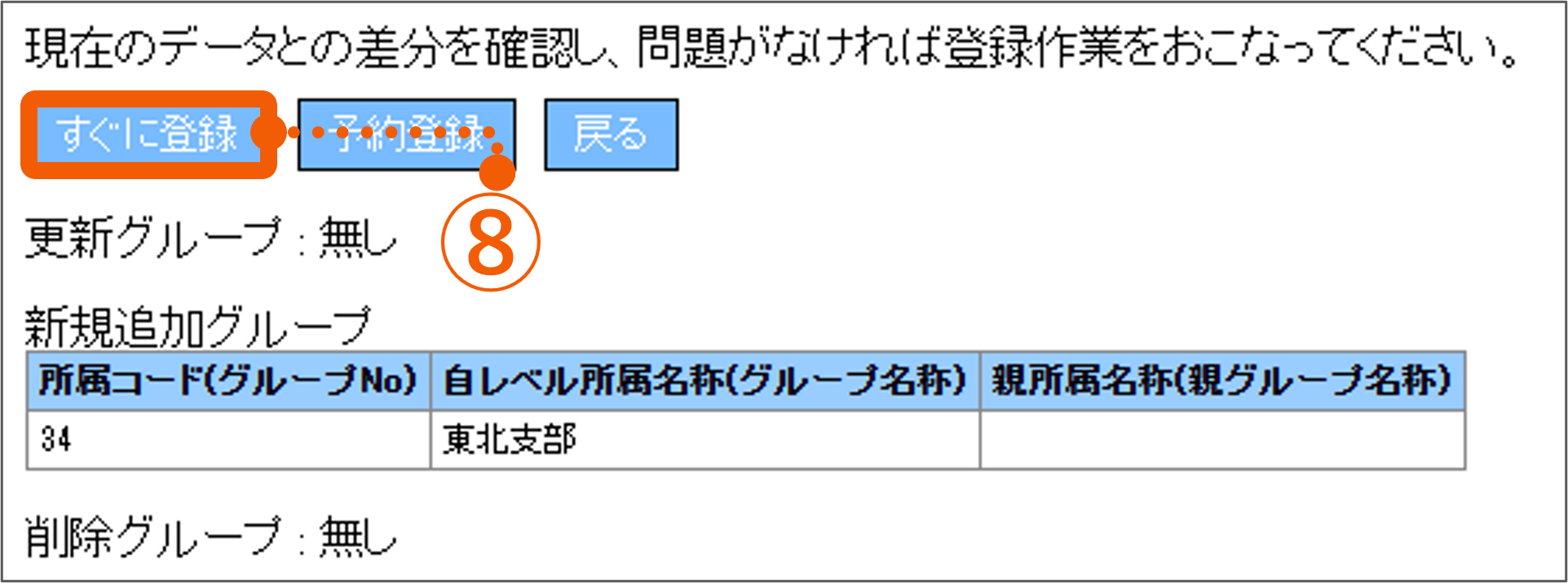 8.登録方法と現在のデータとの差分表示が出ます。内容確認し、「すぐに登録」を押します。