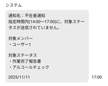 打刻し忘れ等を防止していただける機能です。 >>通知例