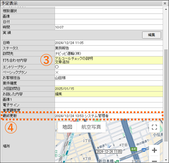4.最終更新の日時が更新され、更新したユーザー名が追加されます。