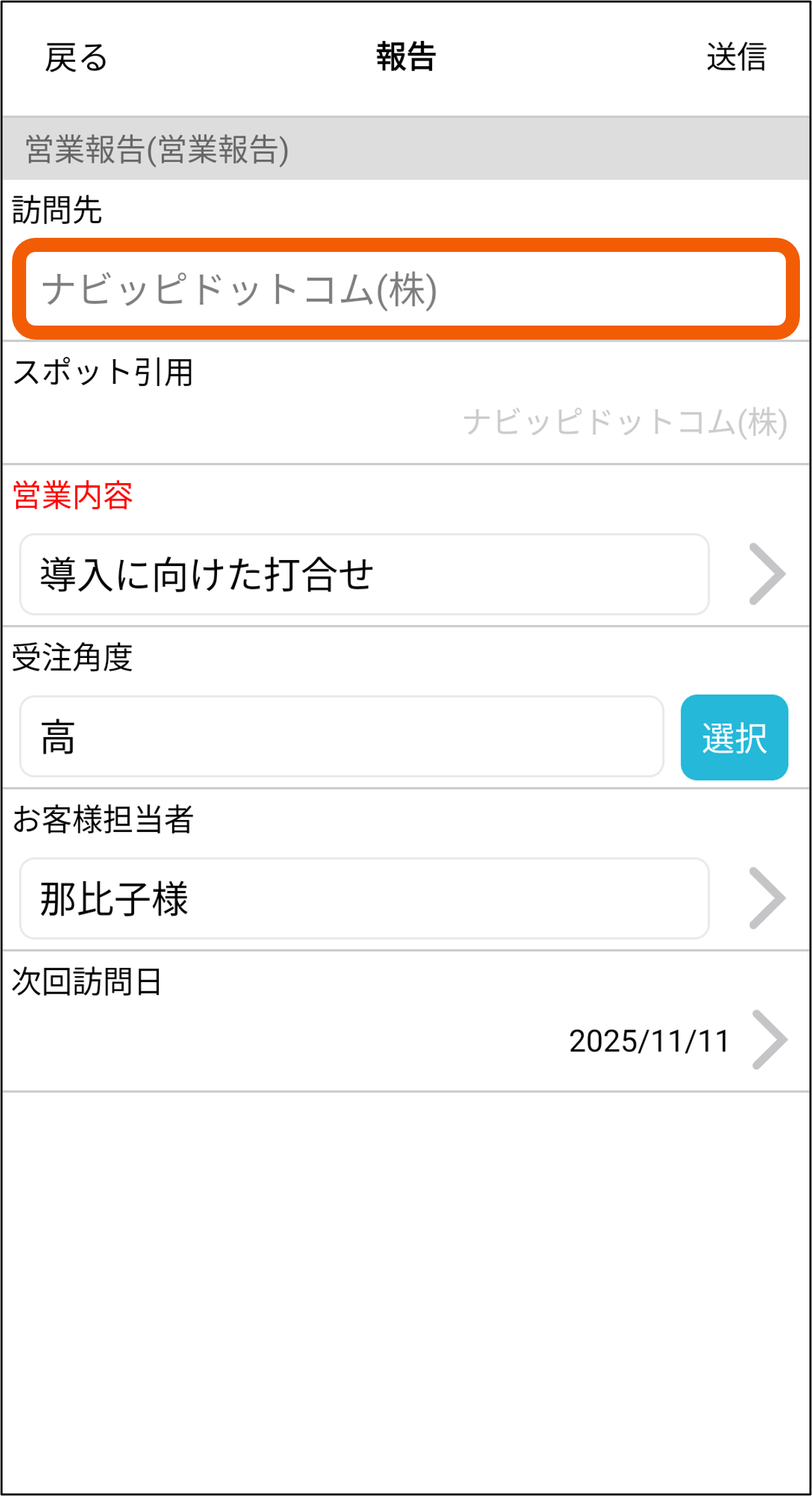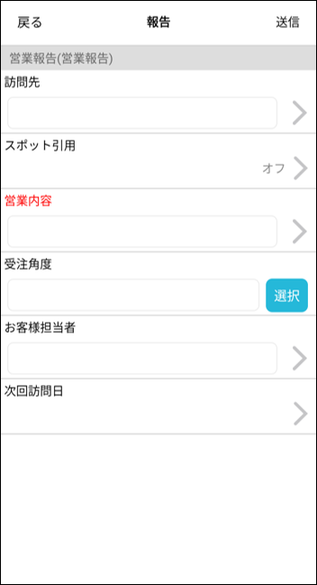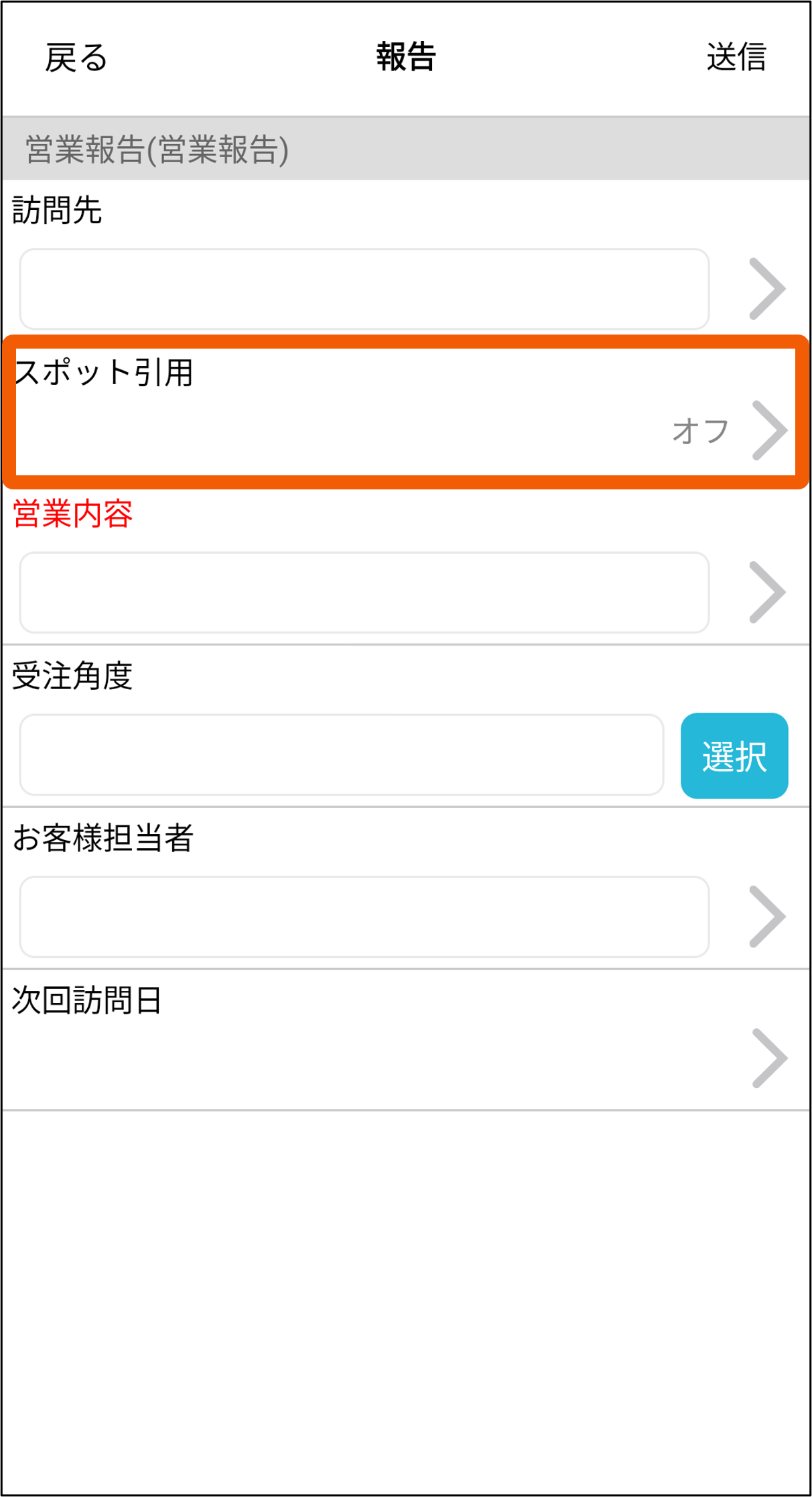 1.「報告書」報告画面から「スポット引用」を選択します。