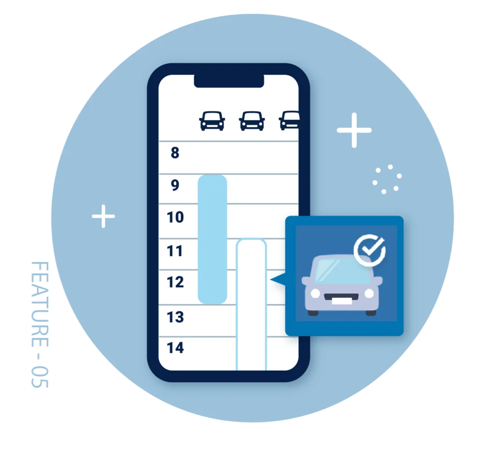 車両情報の登録に加えて、車検日や定期メンテナンスを通知する“リマインダー機能”により、運用負担を軽減します。車両予約機能は、アルコールチェックの送信状況と合わせてリアルタイムで可視化し、提出漏れや未送信の有無をひと目で把握いただけます。
